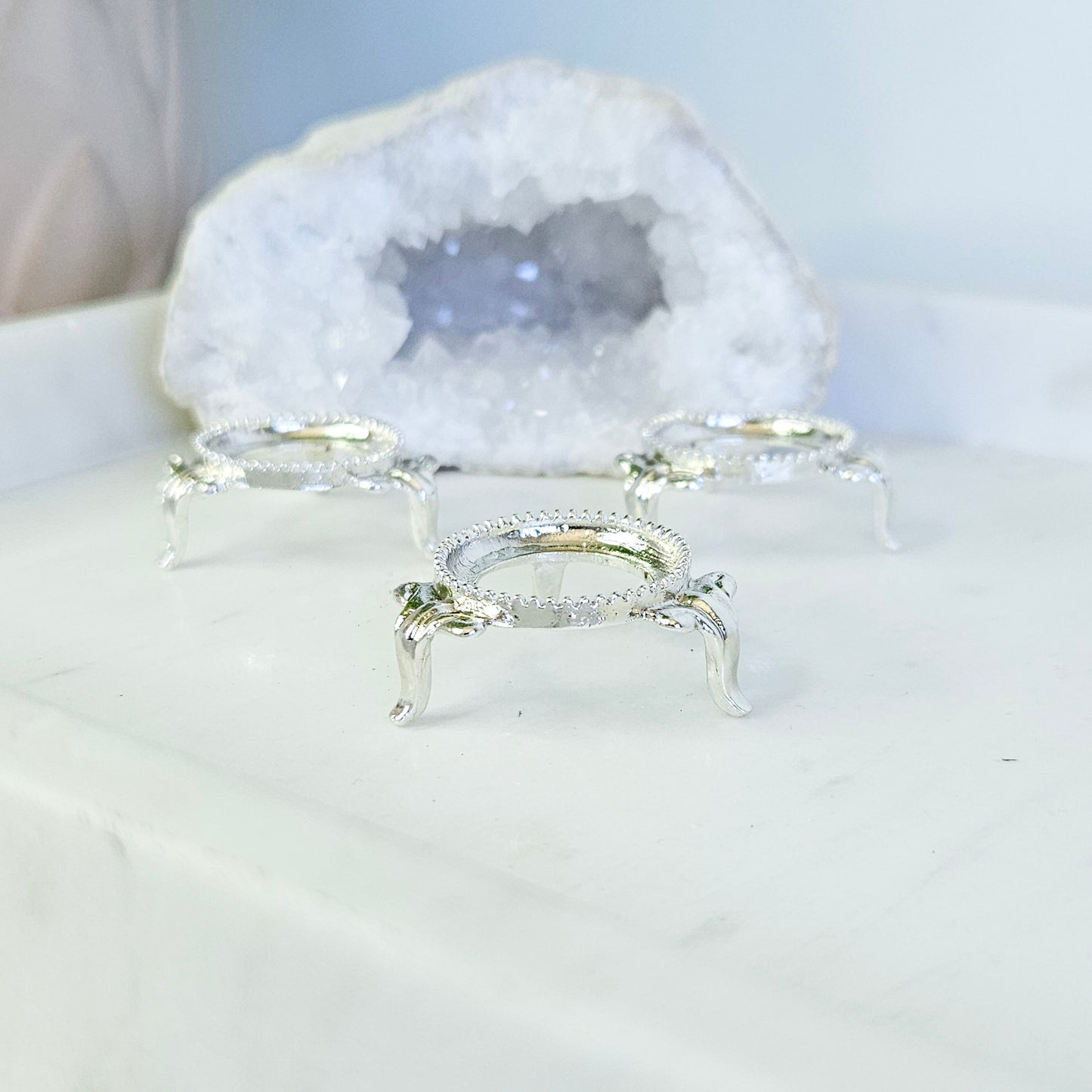 Our Crystal Sphere Display Stands are the best way to elevate the elegance of your cherished crystal spheres. These versatile metal stands have two colour options available in both opulent gold or timeless silver to complement your interior décor. Adding a finishing touch to your crystal sphere collection with not only a secure platform, but also to showcase your collection in the most stylish way possible.