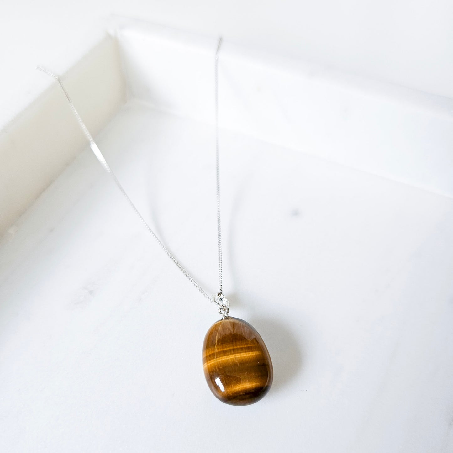 | Form | Polished Tigers Eye Crystal Necklace Pendant With Sterling Silver Chain |